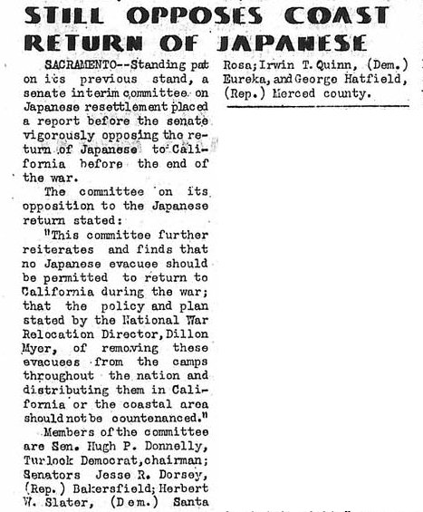 Page 4: Outlines measures on evacuee housing; HST singds bills to transfer WRA funds; eviction case before court; Nisei girls scholarship; writer tours middle west; no help, no shoe stamp; etiquette class; church briefs; church schedule.