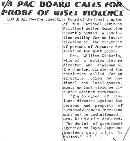 Page 2: Nisei Potpourri; guild to launch inquiry on lack of prosecution; letter to the editor; says violence un-American.