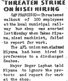 Page 3: Takes post in New York; may hire Nisei in center civil service posts; supervisors deny relief; farm nears end cont; co-op meeting; Army discharge cont; courage to push ahead.