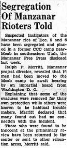 Page 1: Plans mapped for registration; speed up WRA job program; shoe ration books to be issued; farm program given approval; over-heated stoves cause of two fires; course in war production training program planned; WRA physician visits center; preliminary hearing board to handle all criminal cases.