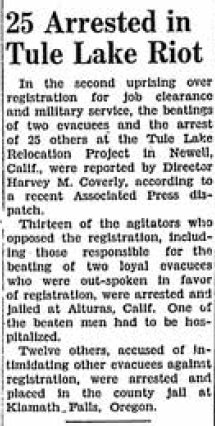 Page 1: Nisei farm work training program starts; residents find many offers, leave center; sell $300,000 in money orders; foster parents sought for baby; dates set for clean-up week; police nab nine in raid (gambling); dissolution of WCCA told; plan release of Kodaks, radios; mess hall workers to inaugurate club; meals hours changed to boost work efficiency.