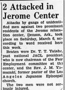 Page 1: Return to center possible but not encouraged; volunteers adopt credo; big dinner highlights gala week; turnout pleases Col. Rasmussen; Robertson calls for workers to push vital farm project; experts to visit beet fields; Joe Nisei baffled by new changes in office location.