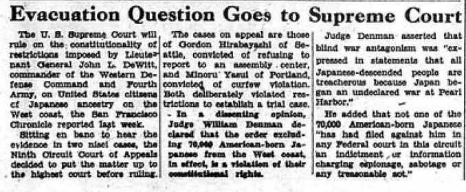 Page 1: WRA eases leave regulations; project area opening due soon; return to center is possible; administrative staff shifted; court suspends functions; aid available for evacuees without funds; project head may now issue indefinite pass; alien evacuees serving in Army eligible for citizenship; work efficiency conference held; Col. Rasmussen here Sunday for interviews.