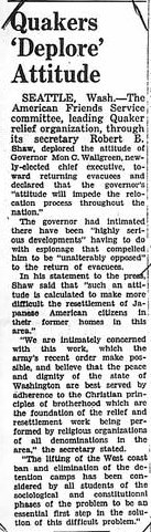 Page 1: No chance of change in policy, Myer says; Kimura wins air medal for vital flights; evader's trial is postponed; Riverside YW offers housing; 'no movement against Nisei' at Wyoming U.