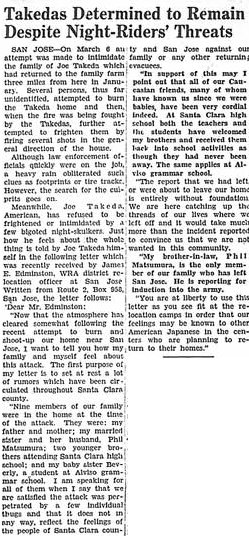 Page 4: Editorial; On the Outside; Washington News-Letter; friendly reception reported by evacuees in L.A.