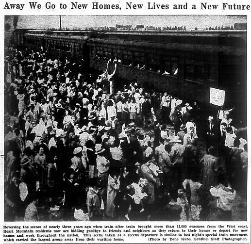 Page 1: Officers of famous 442nd have replacement plan to assist returning vets; project director urges early relocation plans; relocation men confer with officials here; Myer estimates 24,000 will return to Pacific Coast; 91-year-old man leaves for Chicago; many Californians make the long trip back home to reestablish themselves.
