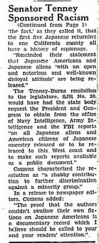 Page 1: 2209 leave center in six months; 180 residents ride 'special' on relocation; soldiers will accept Nisei, Myer predicts; most evacuees are returning to California; Reverand Murphy fights League; residents find life can be resumed despite three years behind barbed wires.
