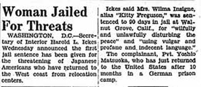 Page 5: One Year Ago This Week; Round Up; every minority group scapegoated; letters to the editor; Pvt. Kageta cont.; Pvt. Yamamura back from Europe.
