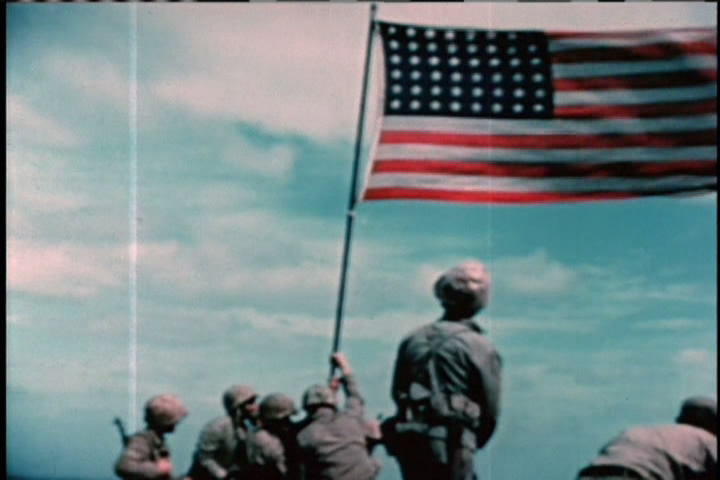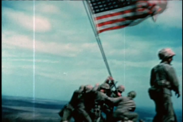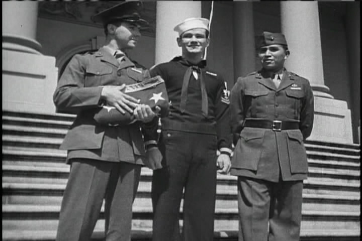 The video goes into the histories of the men who raised the flags.