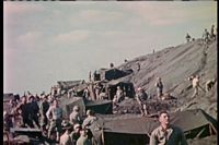 The video includes a radio broadcast from the scene of the battle.