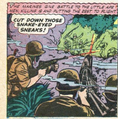 'Snake-eyed sneaks' becomes yet another way to put down the Japanese. The 'sneaky' aspect arose from their attack on Pearl Harbor.