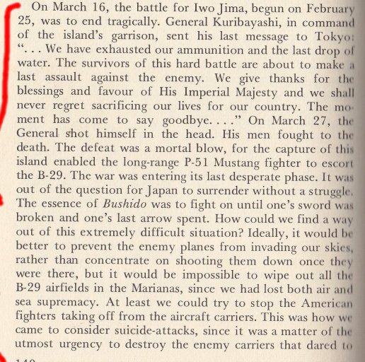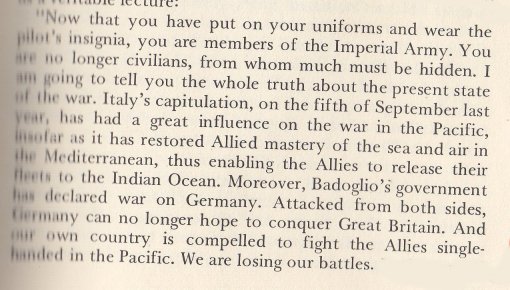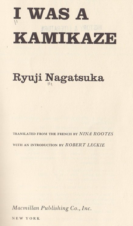 It's a fascinating book, obviously written by someone who, at the time, believed fully in the Emperor and was willing to die for his country by flying his plane into an American ship.