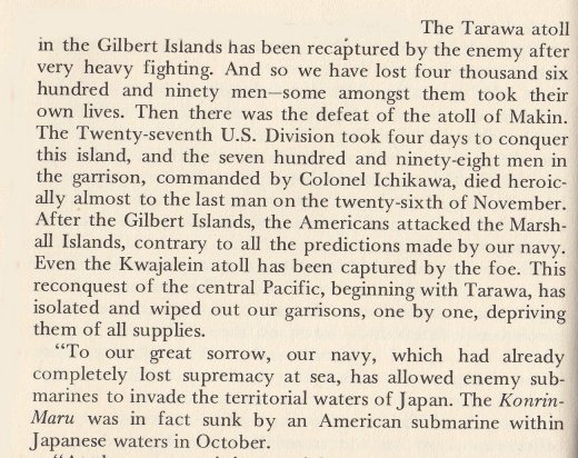 This quote from the book shows what other books had said, but is from someone on the inside. The Japanese civilians were not told the truth about what was going on in the war when things started getting bad.