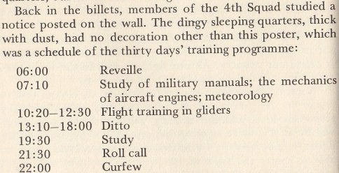 This was their training schedule, from six in the morning until six at night. At this point, their training was in gliders; they hadn't even flown an airplane yet.