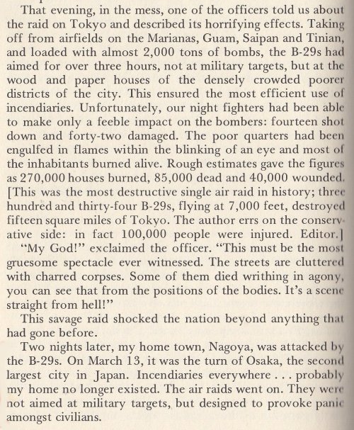 He talks about the great firebombing raid on Tokyo in March of 1945.