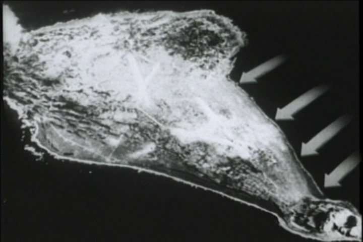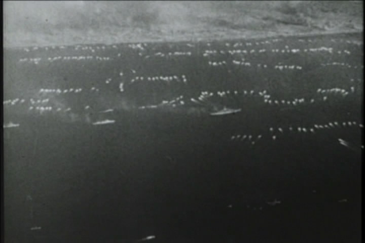 All those little white things are wakes of ships filled with Marines getting ready to land on the island.