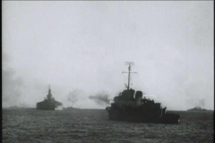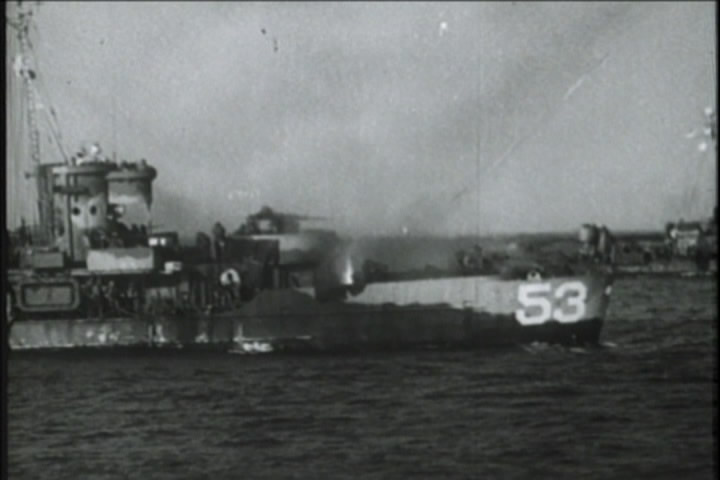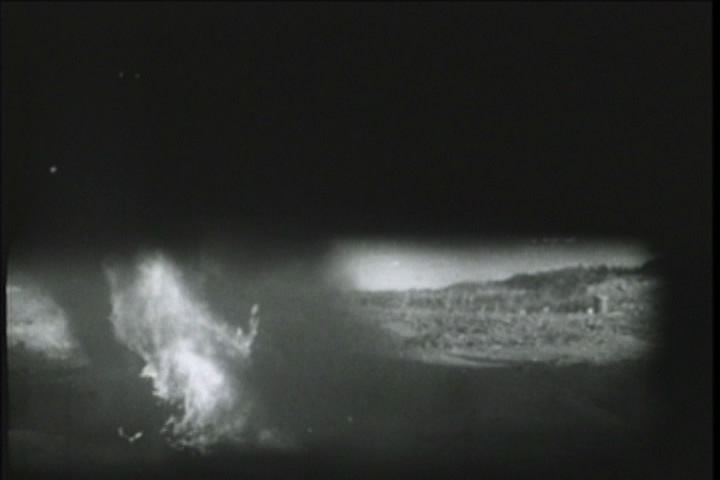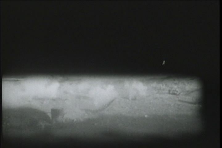 Filmed from inside a tank as it shoots at a Japanese soldier caught out in the open.