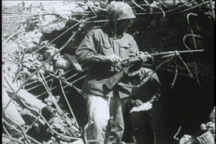 A few Japanese have been taken prisoner. 12,500 Japanese had been killed on Iwo when this video was made.