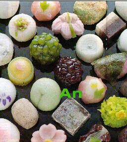 An is a sweet paste usually made from sugar and boiled and mashed adzuki (red beans). The food item came from China as a steamed bun with a meat filling. At that time, though, the Japanese were strict Buddhists, did not eat meat, and so filled the bun with bean paste instead.