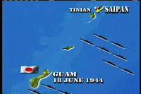 The Americans destroyed the Japanese planes on Guam, which they had planned to use to attack the American fleet at Saipan.