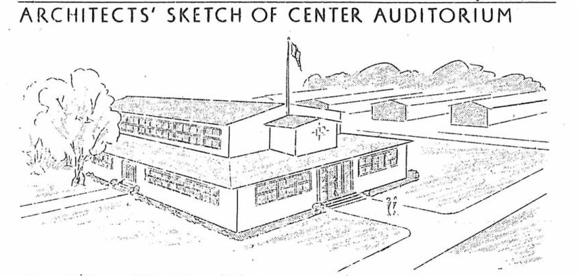 Page 4: Article on planned auditorium; project hospital issues call for more nurses' aides; clubs on parade column; beauty shop being built; materials may be ordered; co-op classes to start; girls help; lost; Eight-Elites; Progressors; Vanguards.