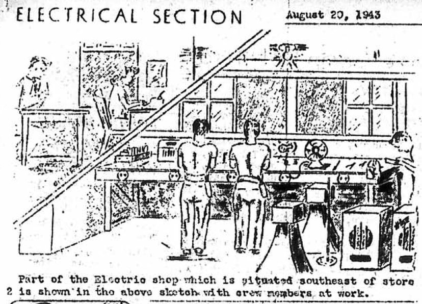 Page 3: The Compass and From the Bull Pen columns; electrical shop located now in new quarters; impressions of outside told; co-op info.