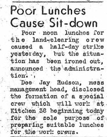 Page 3: Farm plan is developed; lumber workers are needed; a representative from Social Security is there; students will be allowed to work part time; change-of-addresses need to be filled out; conserve medical supplies; lost & found items; names of new club members must be submitted to the Community Activities Department; six military officers are due to visit; a banking representative will be there; thank-you for sympathy notice; Co-ops to be Adult Forum topic.