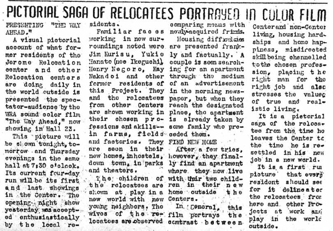 Page 1: Lovell and Castleberry attend meet; relocation meetings are slated; WRA team to give factual information; registration.