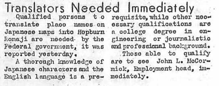 Page 1: Grid game; first sumo tournament; November pay held up due to lack of cash; pay raises clarified; more men sign up as loggers; record survey aids job hunt; post office has a package but isn't sure who it belongs to; committee to distribute gifts here; alterations shop cannot make dresses; individual hobby check being made.