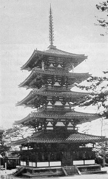The five-story Pagoda from the Horyu-ji temple.