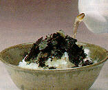 Nori is seaweed that is laid out in the sun in thin sheets to dry on wooden frames. It is usually sold in crispy sheets which have to be kept perfectly dry or the nori will go limp. Nori is often used in a breakfast to dip in soy sauce and wrap around bits of rice. If it's wrapped around rice and fish or vegetables it's called norimaki-zushi. O-chazuke is a bowl of rice and shredded nori that has been doused in hot tea.