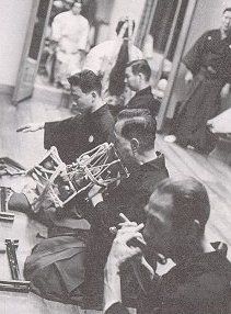 The backstage area can be as busy as any Western-style theater, as is shown in the picture below where the shite and the musicians prepare to go on stage.
