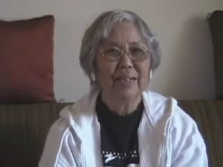 The woman talks about how she had lived on a farm and then her and her family were put on a 'horrible' train and keep the blinds down. They went to Granada. The trip took four days. They were allowed out only once during the entire trip.