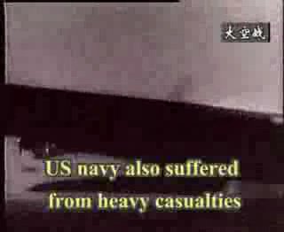 There's no narration for the video at all, so I'll have to add stuff on my own. This shows the fate of the majority of kamikaze planes; they were shot down before they were able to hit anything. Still, with the number of kamikaze planes used, enough managed to make it through and hit their targets to cause a good deal of damage to naval ships.