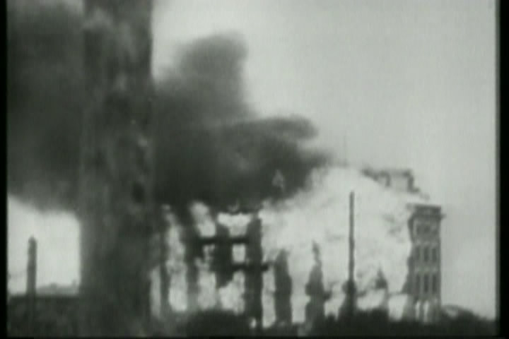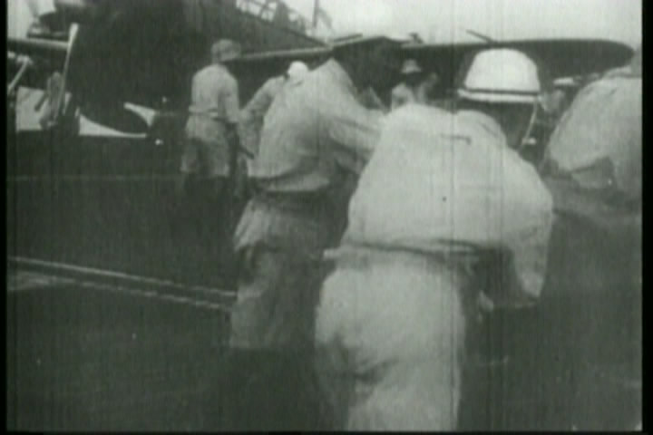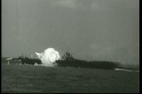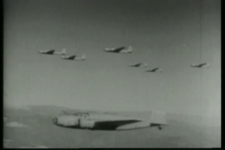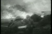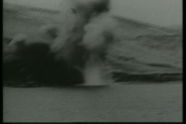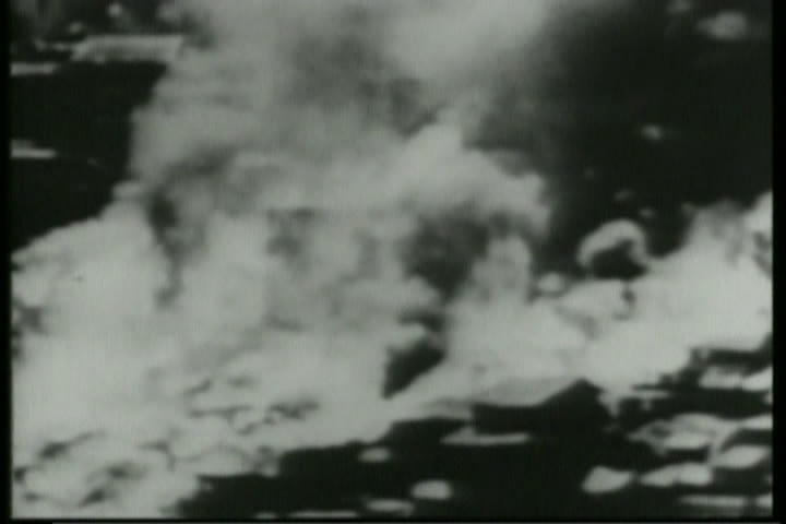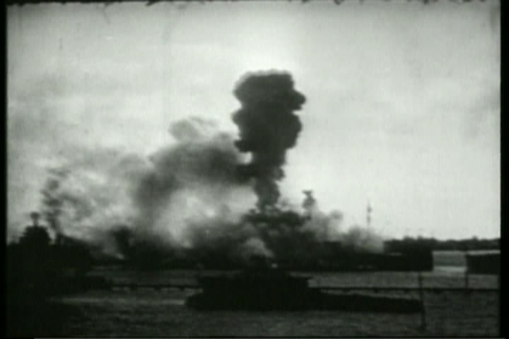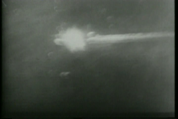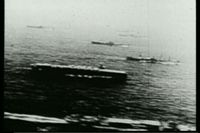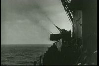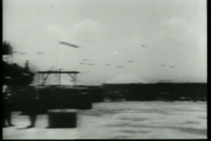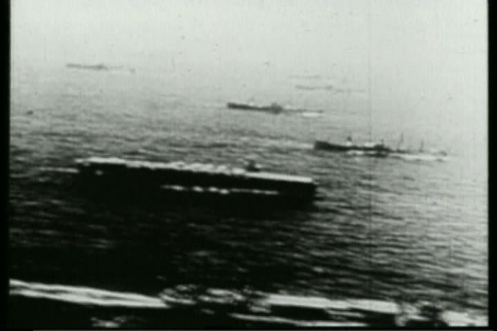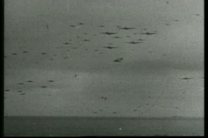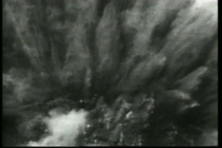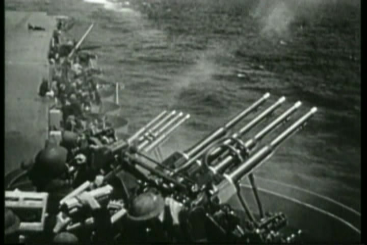 A large kamikaze force attacks the US ships at Okinawa. (One of the problems in the video is its tendency to reuse short clips, so scenes such as this one might be from the Okinawa battle, and, on the other hand, could be from something else.)