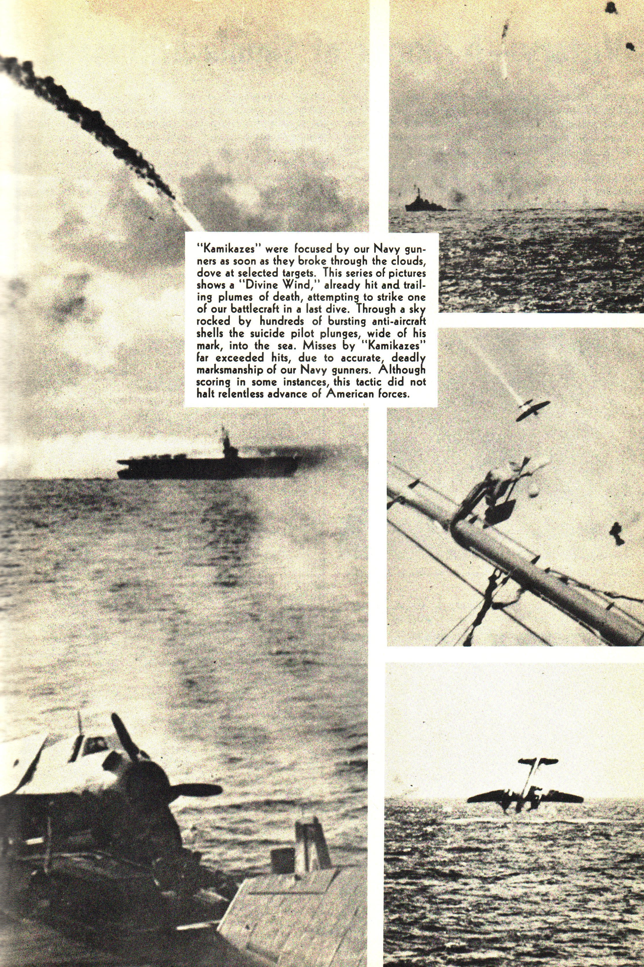 This was later to be shown to be a wildly inaccurate statement, though, as the kamikazes managed to run sink boats, down planes and kill men in relatively decent numbers. Even Newsweek of June 11, 1945 said "From a military viewpoint, it is the best set of tactics the Japans have worked on during the war."