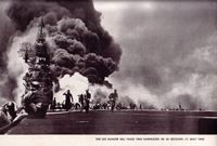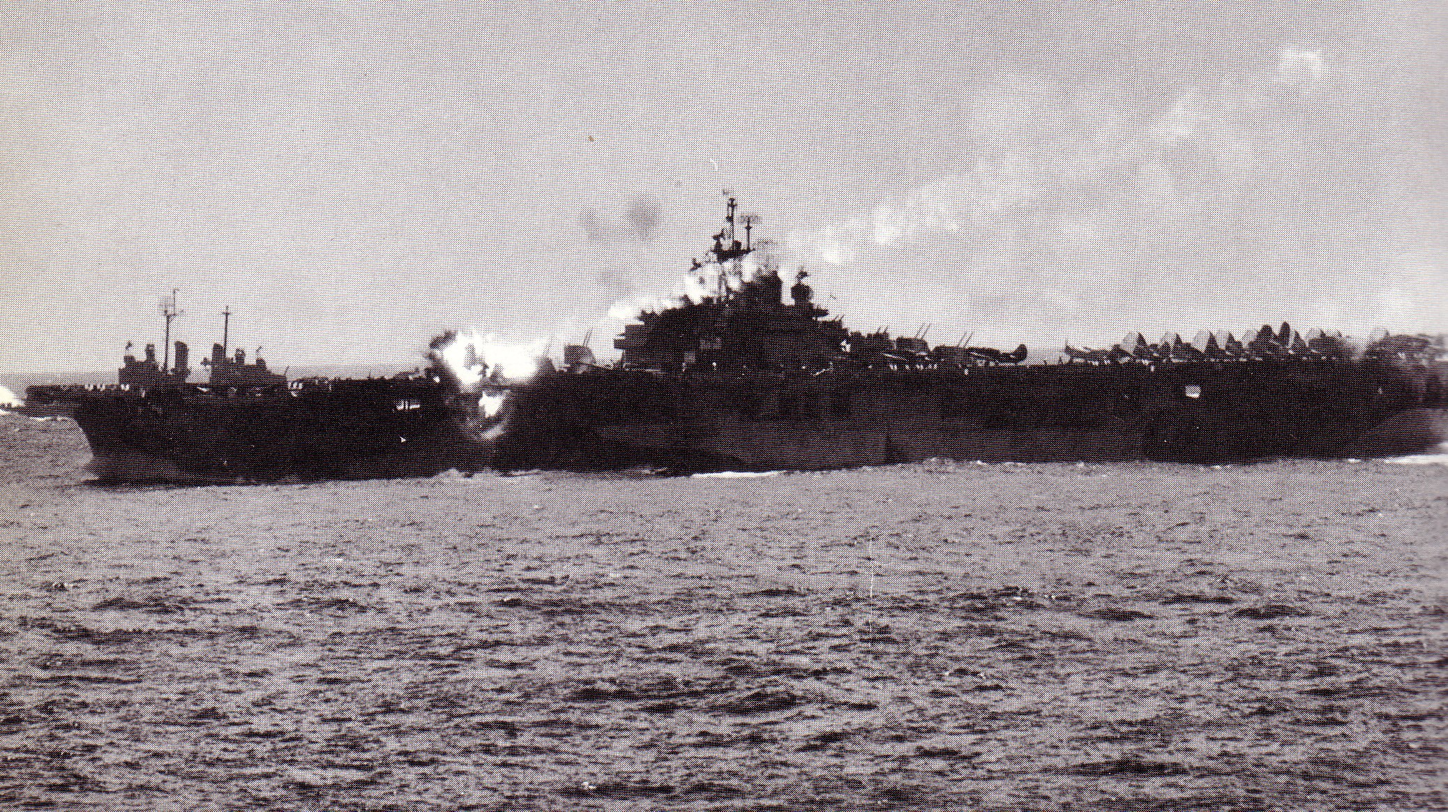 October 25,1944. The kamikaze attack results in the sinking of the St. Lo, a CVE (small escort carrier.) Several other small carriers and hit and badly damaged by the kamikazes. The Japanese reported two ships sunk but only one actually was.