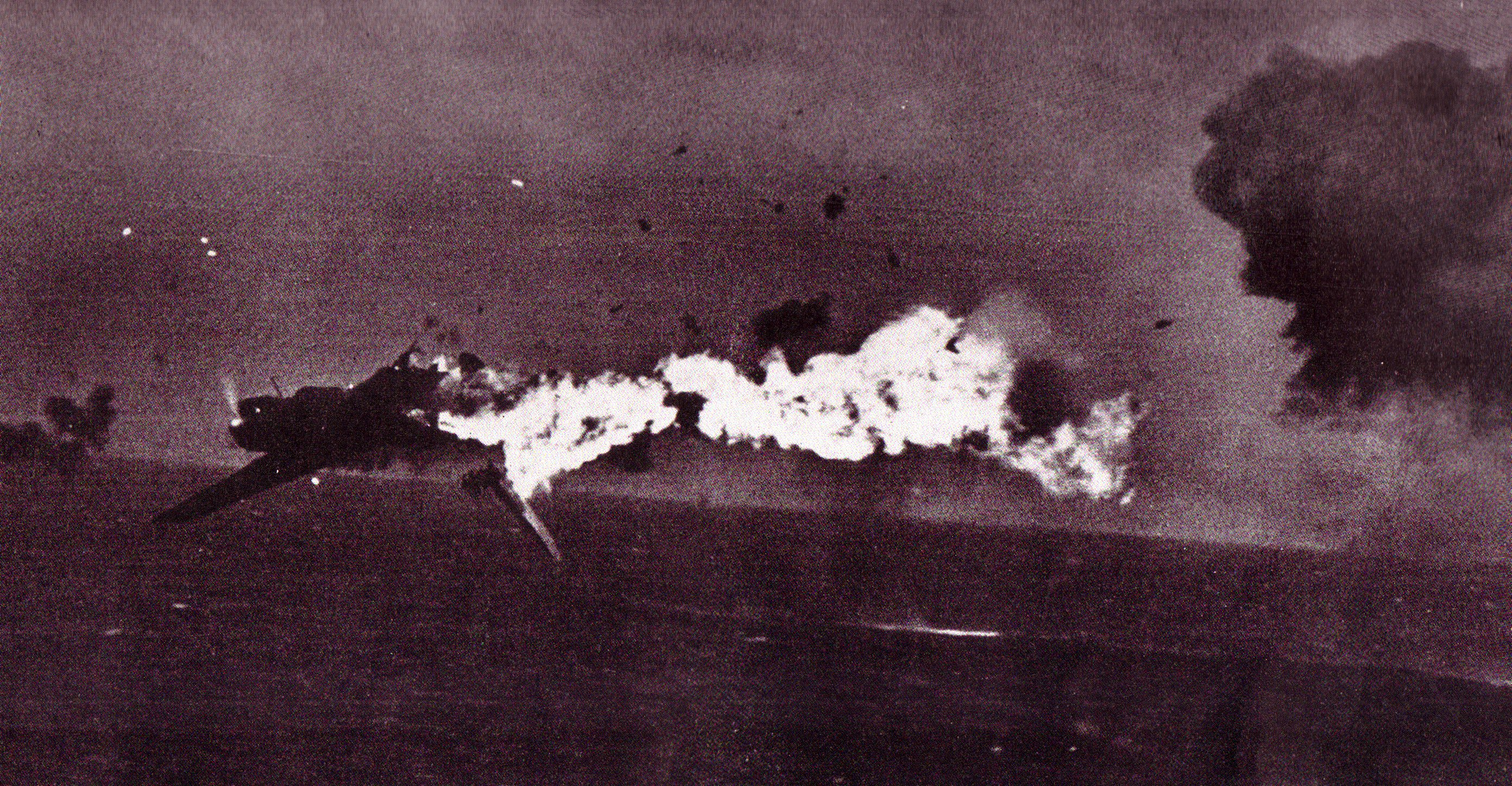 April 6 through June 22: A series of ten kamikaze waves. During the first one the last Japanese warships, including the great battleship Yamato, headed for Okinawa. On the way there they were spotted by U.S. subs and soon attacked by American. The Yamato, a light cruiser and four destroyers were sunk. 3,655 Japanese sailors were killed while U.S. losses were 84. This battle basically destroyed the Japanese navy once and for all.