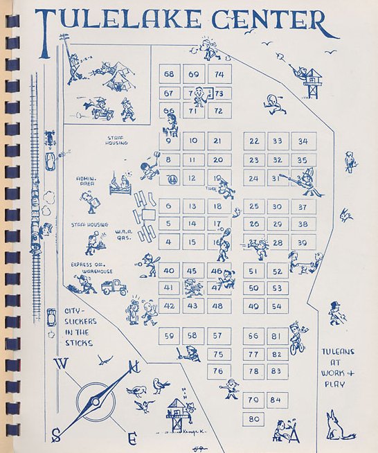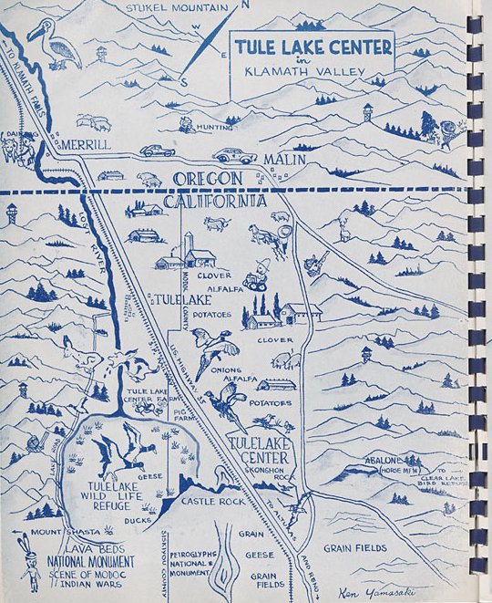 Then there's a map showing where Tule Lake is. Tule Lake was, of course, one of the internment centers for persons of Japanese ancestry during World War II. It was also the camp than ended up holding most of the internees that were the “No-No's,” and various troublemakers, along with regular internees. Thus, the camp had a number of problems and a lot of tension.