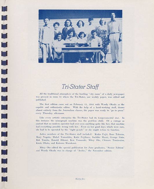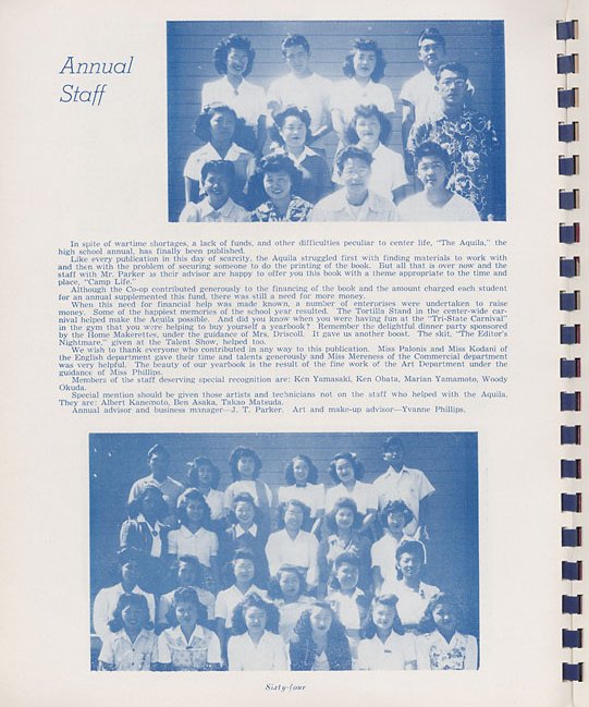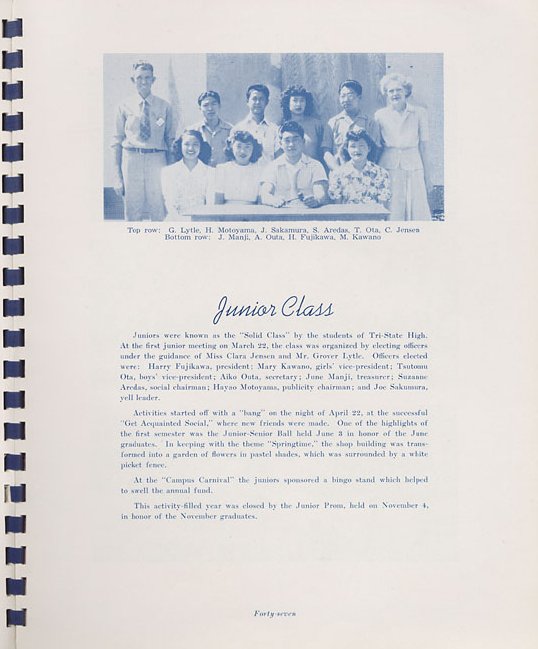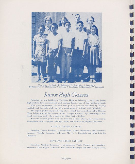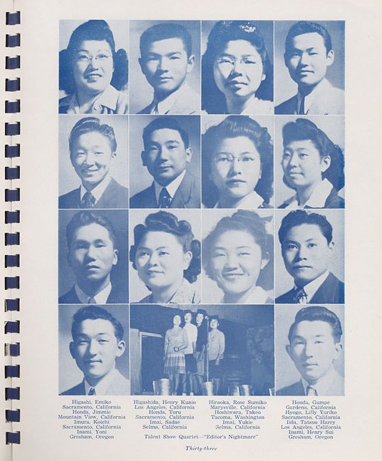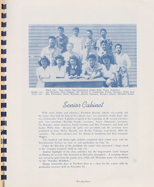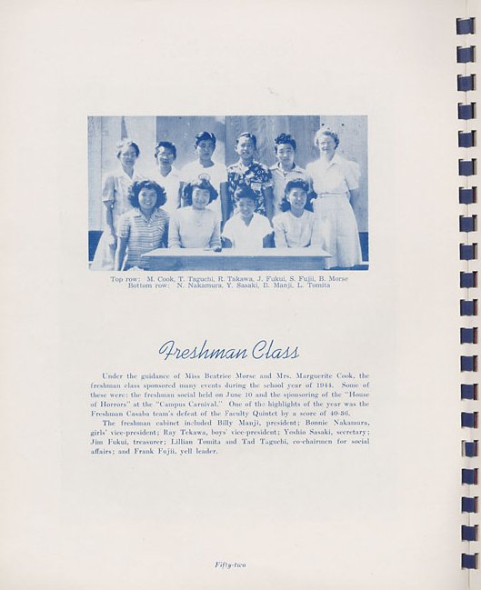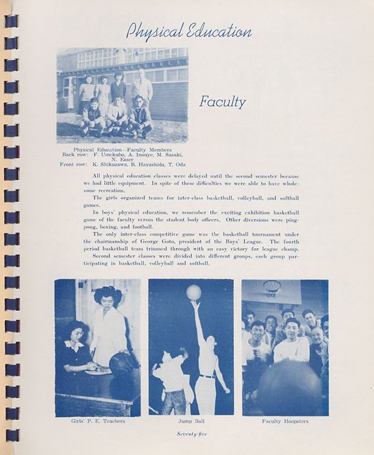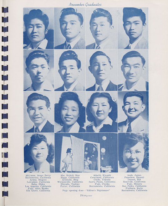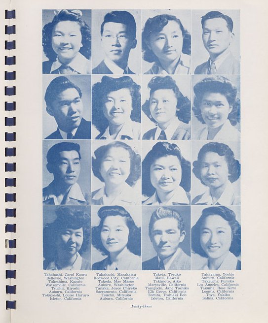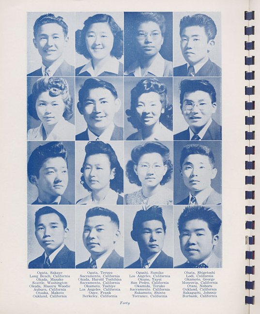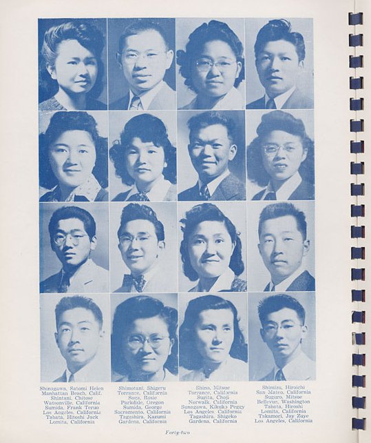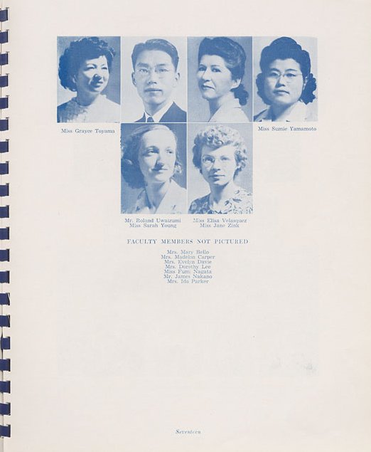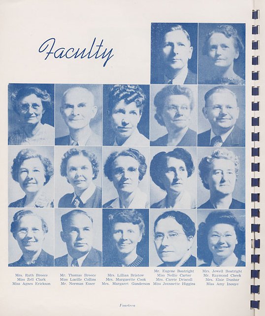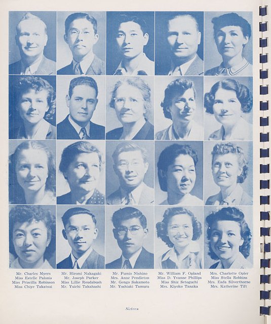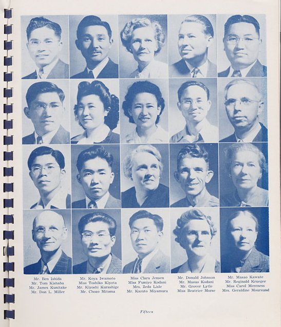 The faculty is a little over 60% white, the rest PJAs (Persons of Japanese Ancestry.) That's not a bad ratio, actually, especially for the times.