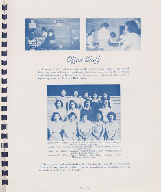 Administrative staff, all white, of course. Although the students were persons of Japanese ancestry, there is no the leader of the school would have reflected their racial makeup.