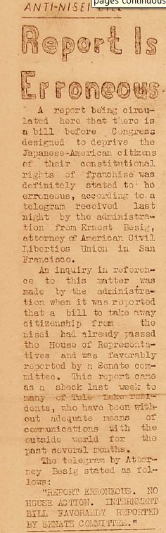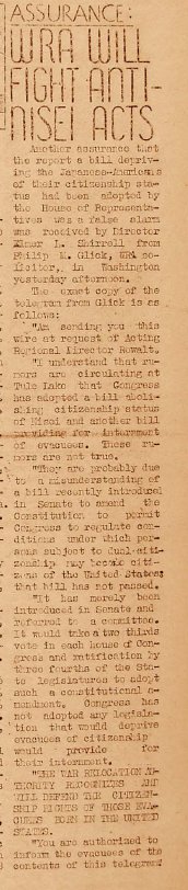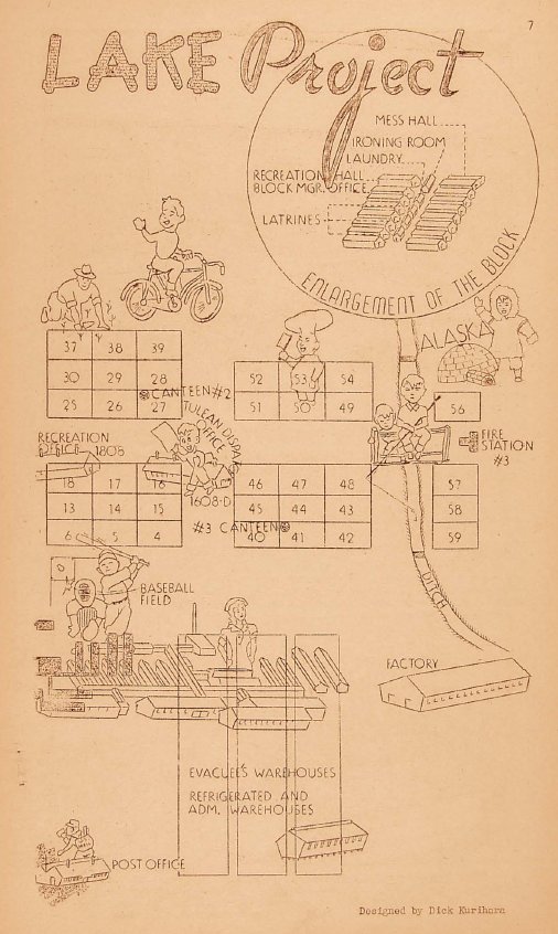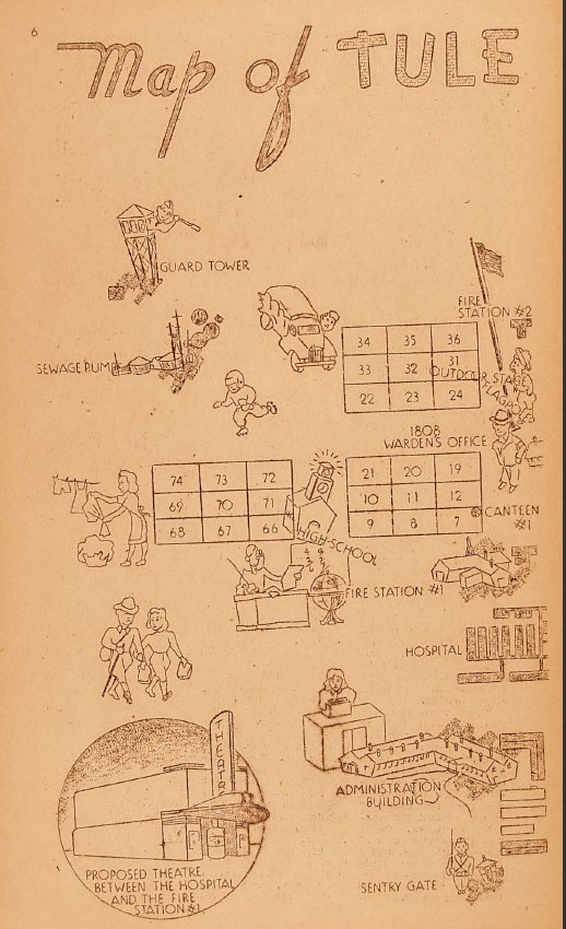 Page 3: Farm funds accumulate; script store building starts; Red Cross gets message forms; woodwork shop to reopen; Tolo dance held coming Saturday; men take critical gaze at Tule Lake girls; 38 finish home nursing course; vital statistics.