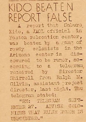 Page 1: Co-op to hold assembly tonight; WRA to move private property; kids, keep away from drainage; four students leave colony; hikers warned against fetching rattlesnakes.