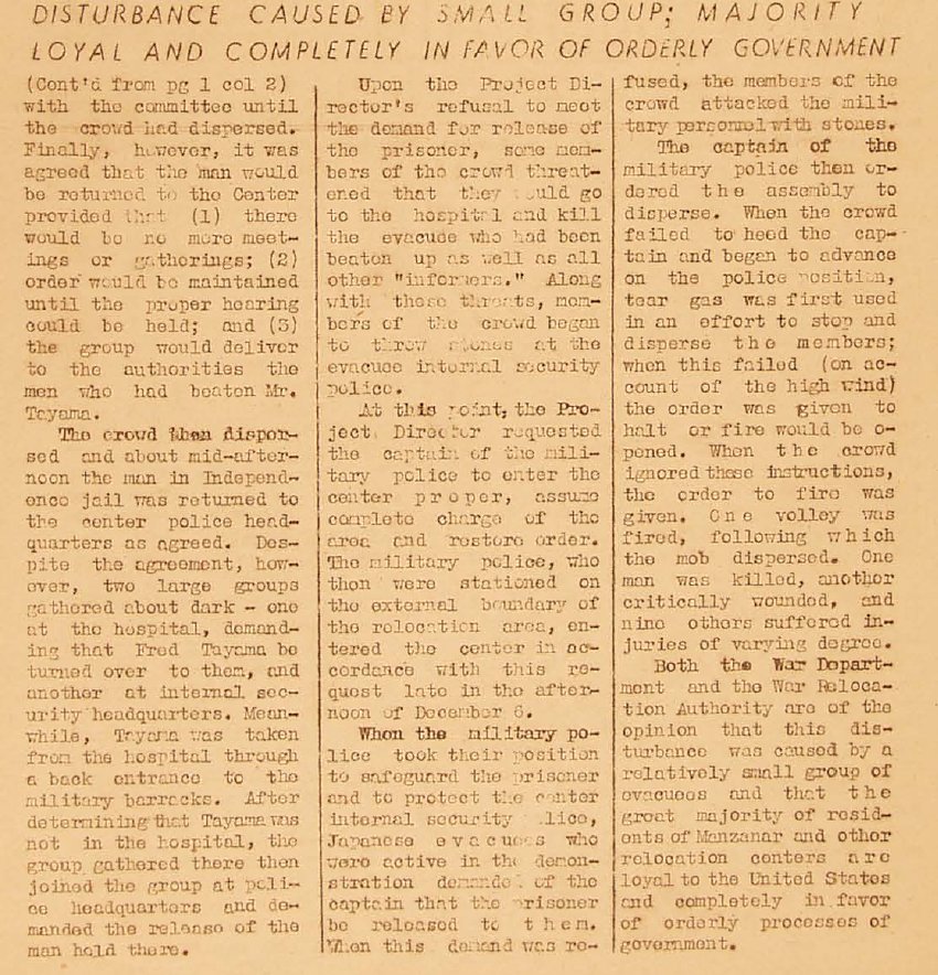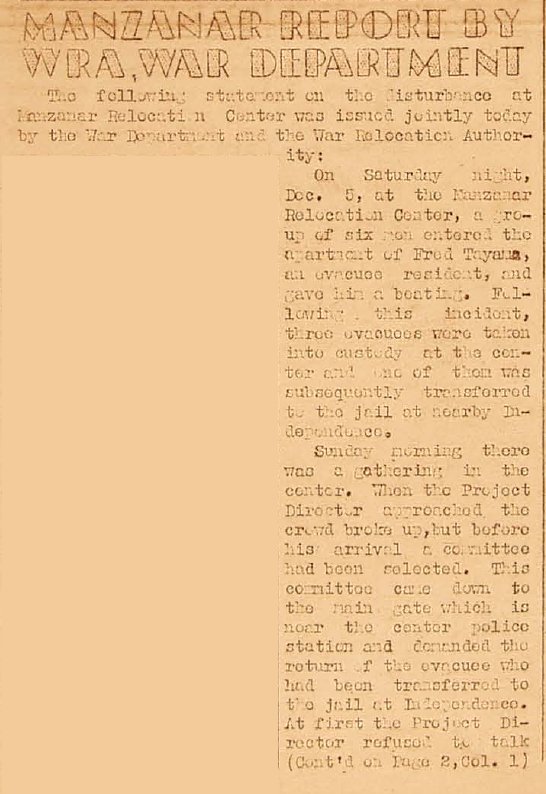 Follow up on the Manzanar trouble.
