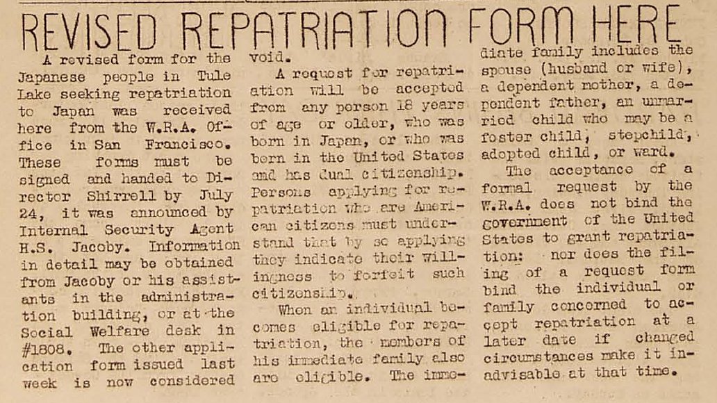 Page 1: Flat Wage Scale forum topic; Bon festival brings color to Tule Lake; colony grows to 13,000 today; new canteen to open on block 41; lawyer named on judicial body; dance forms taught.