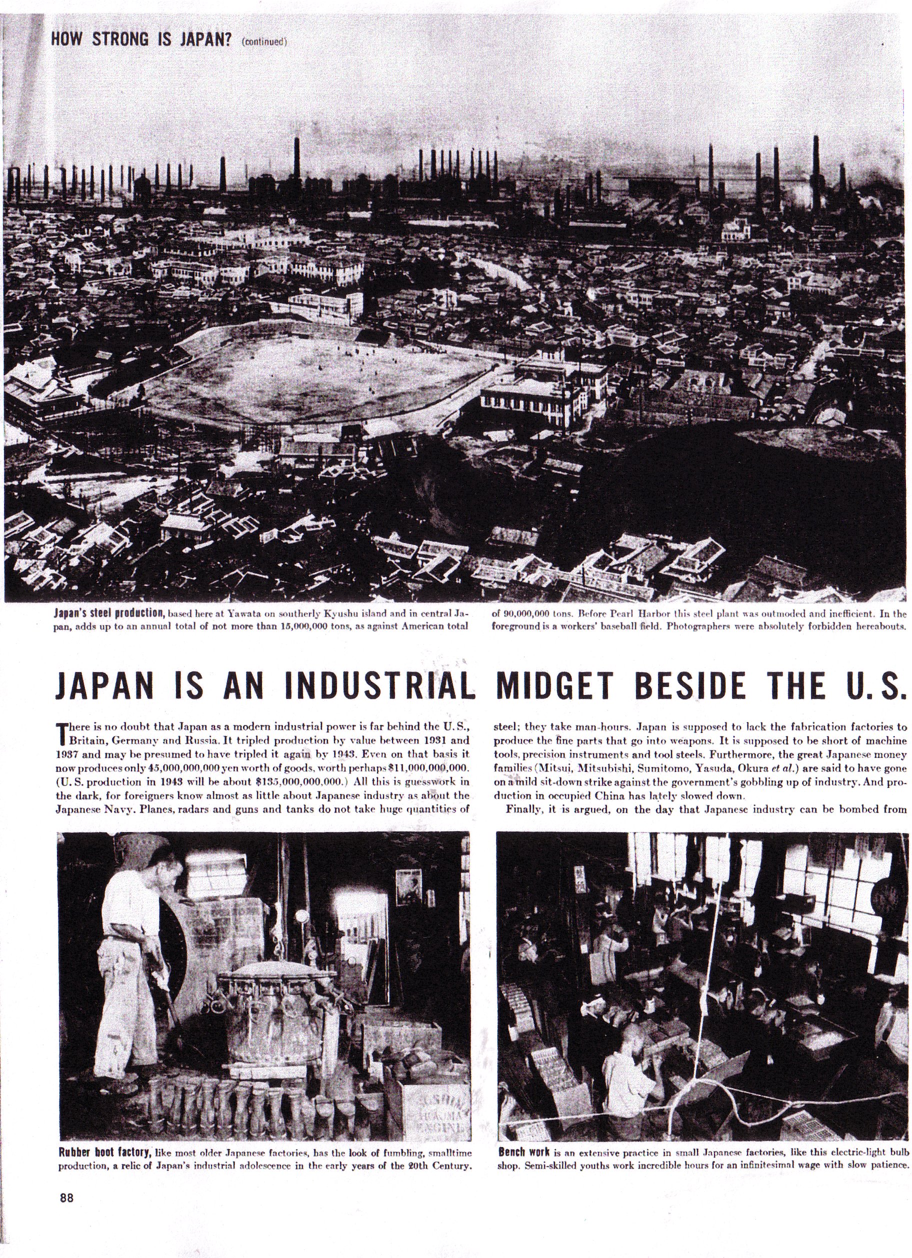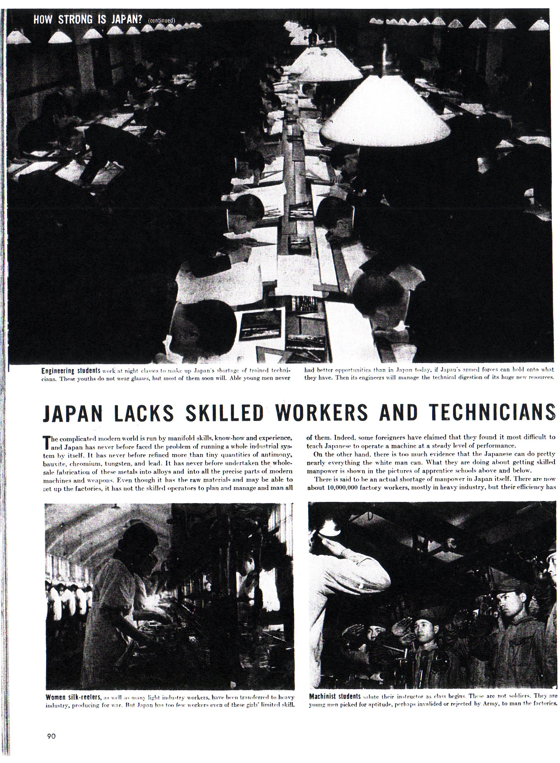 We learned later that Japan had a major problem with their labor. They drafted most of the regular male laborers, and they were replaced by untrained women and, later in the war, even children. The problem with that was that the quality of the war materials that were produced suffered a sharp decline.