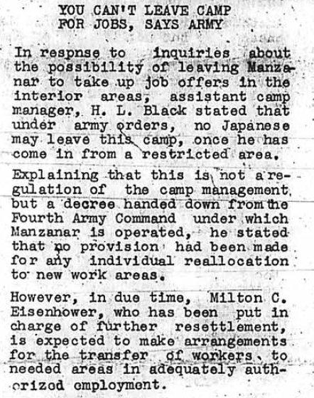 As of that time, no one could take a job outside of the camp.