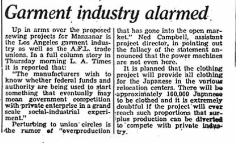 Page 2: Editorials; art exhibit depicts Manzanar beauty; we mourn; dear editor; garment factory supervisor arrives; shortage of cement.