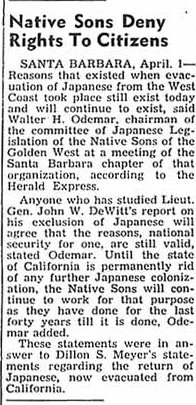 Page 1: Myer backs Japanese return to evacuated West Coast area; west coast return of Japanese sought; group to campaign in behalf of Nisei; reveal floor plans drawn for proposed co-op store; Merritt tells of Washington trip; classification given on Japanese groups; give statistics on post-segregation; bill urges seizure of alien property.