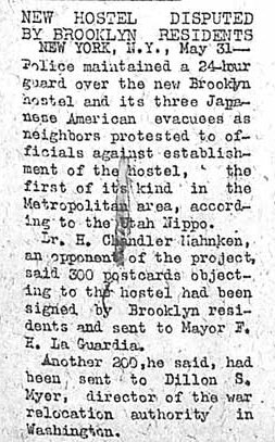 Page 4: Five Japanese Americans enroll at Park College; Ickes refutes La Guardia; first Japanese American family arrive at Boston hostel; chaplain West praises 442nd combat team; slate exhibit on arts and crafts; AFL office sees Nisei stenographer.